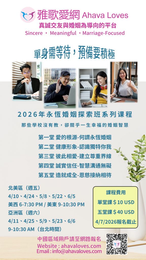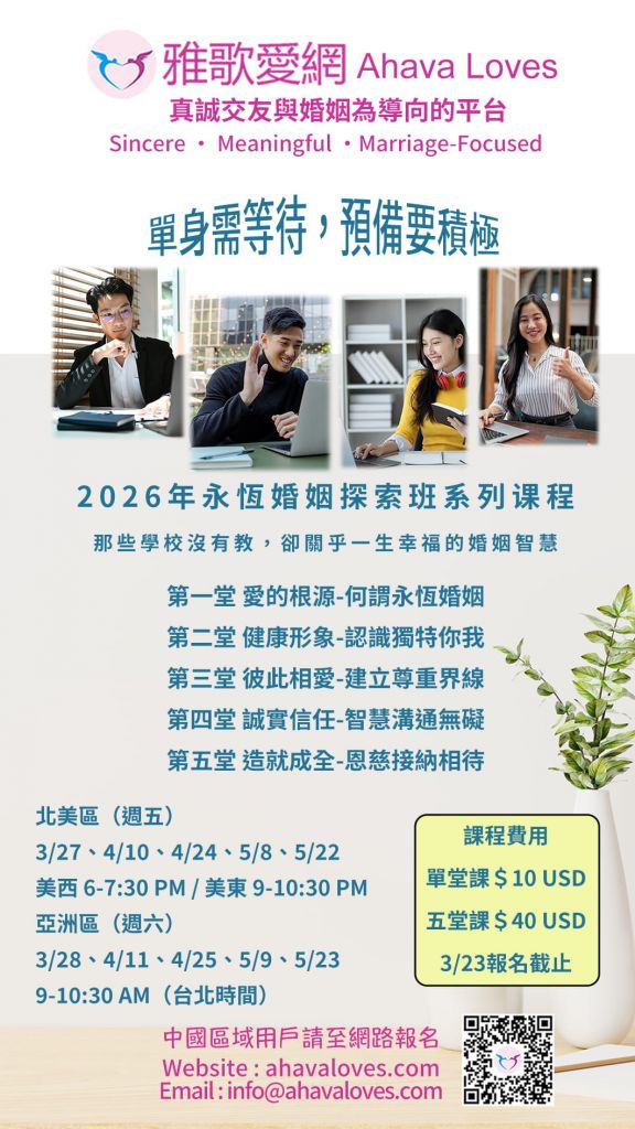 永恆婚姻探索班: 3月 ~ 5月