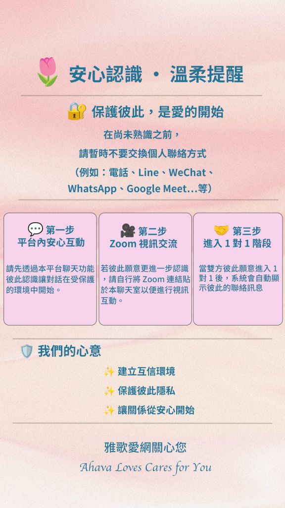 溫馨提醒: 熟識前,請勿交換個人聯絡方式