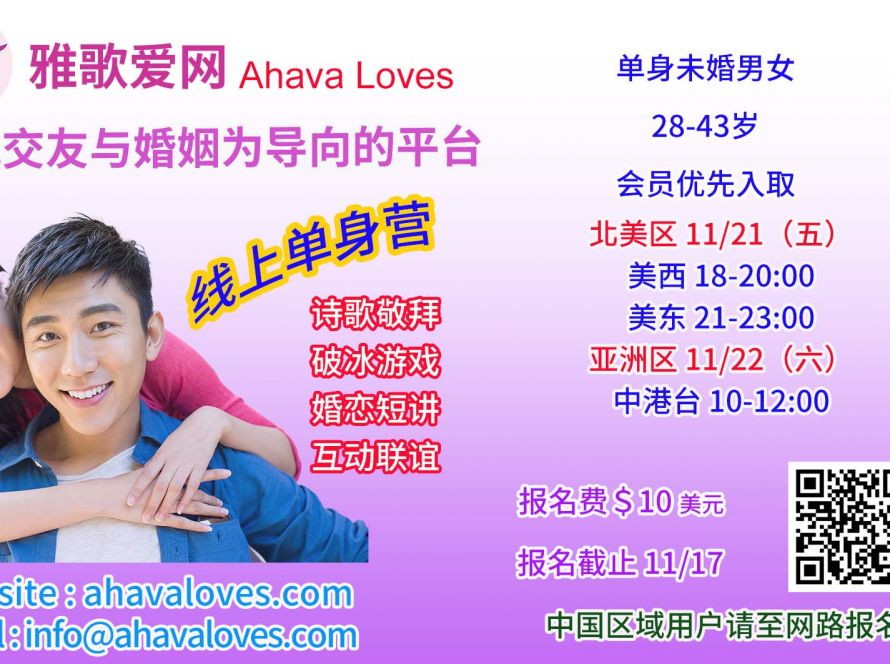 线上单身营:北美 11/21 (五); 亚洲 11/22 (六)