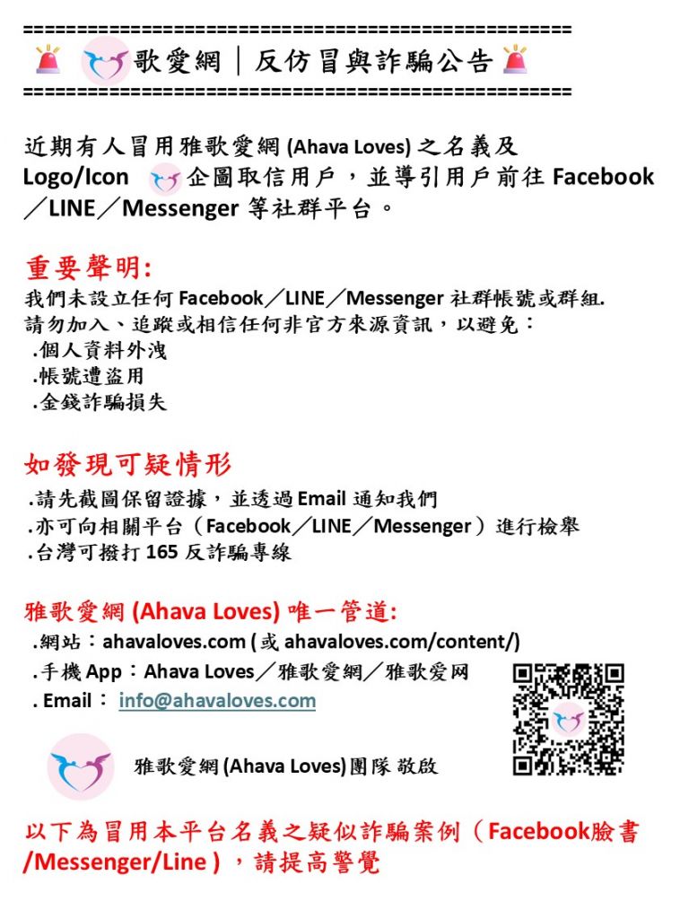 雅歌愛網: – 反仿冒/詐騙