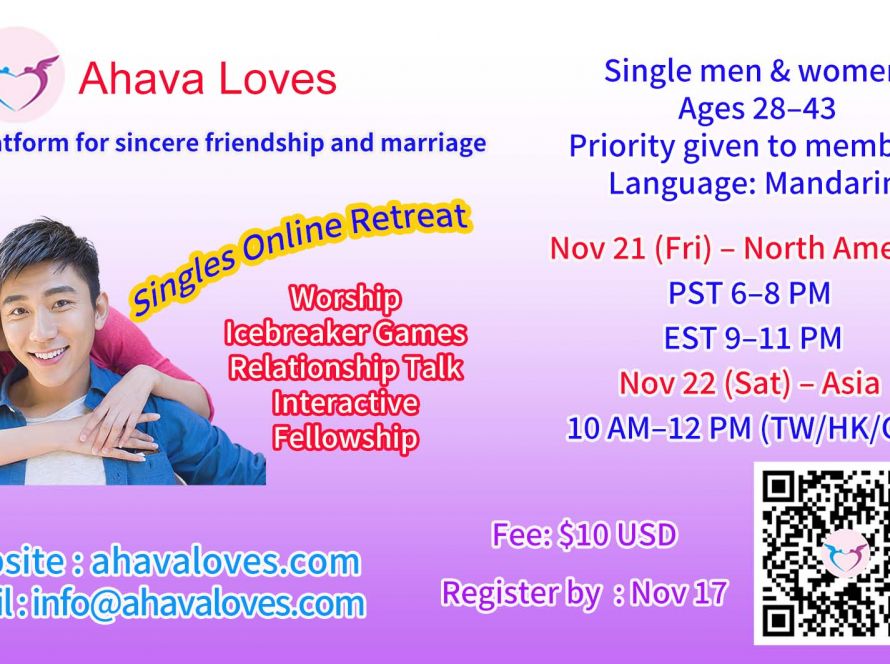 Online Singles Camp: North America, 11/21 (Fri); Asia, 11/22 (Sat)